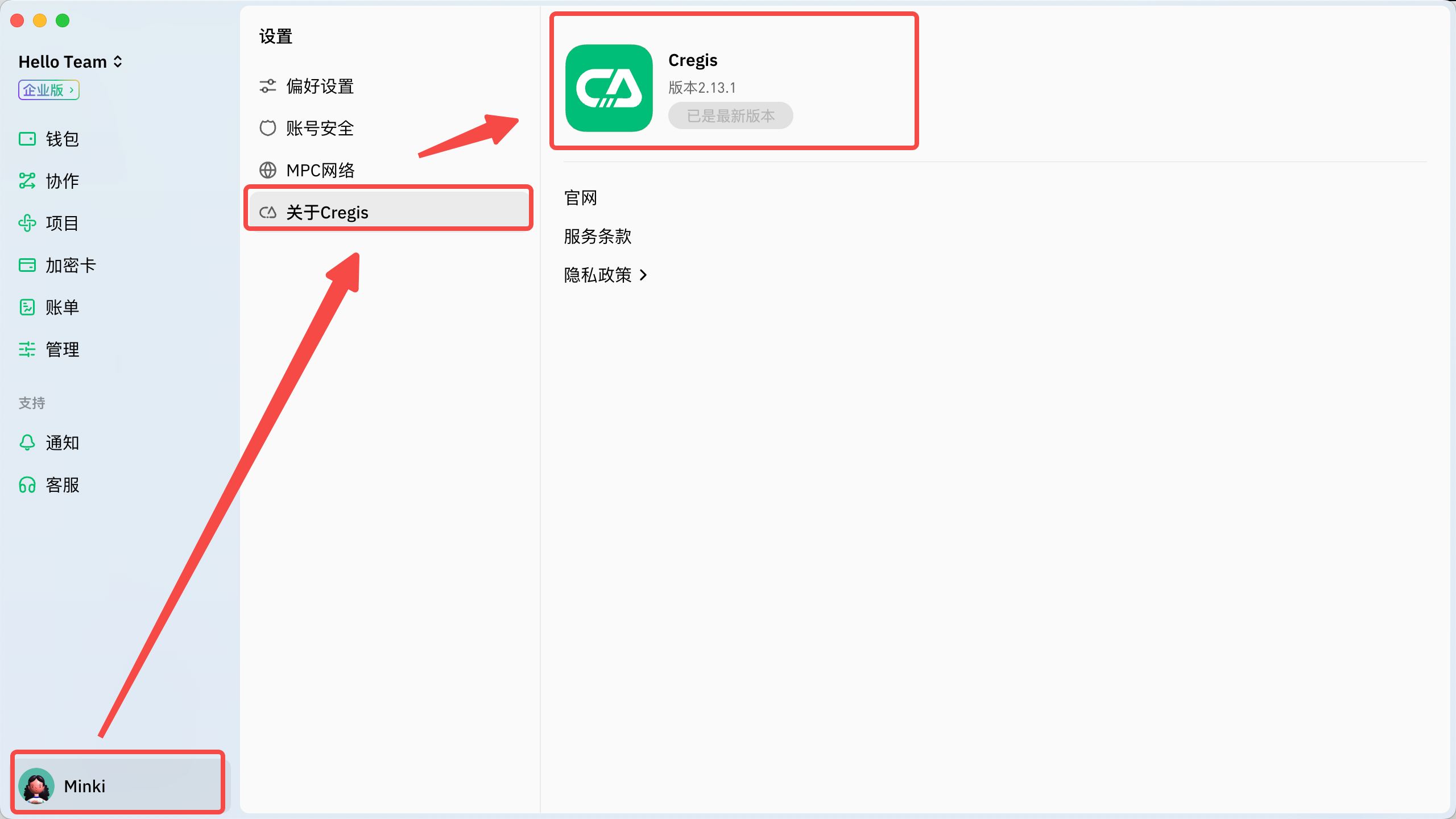 您可以根据以下图示找到Cregis版本信息。