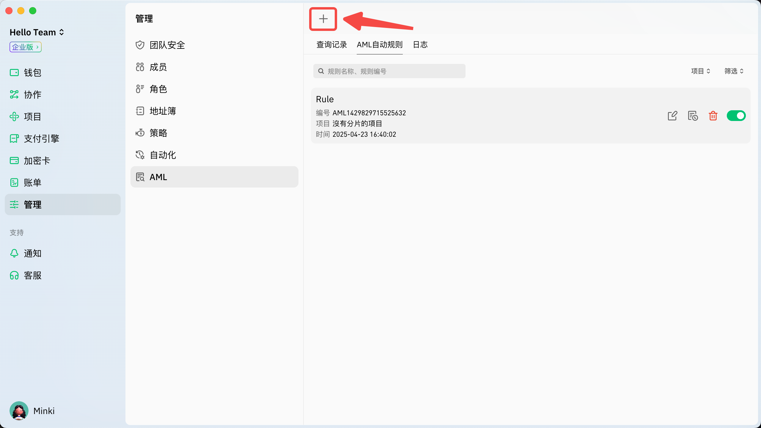 自动查询主要的操作是设定好AML自动规则，可以先进入以下页面然后点击创建。