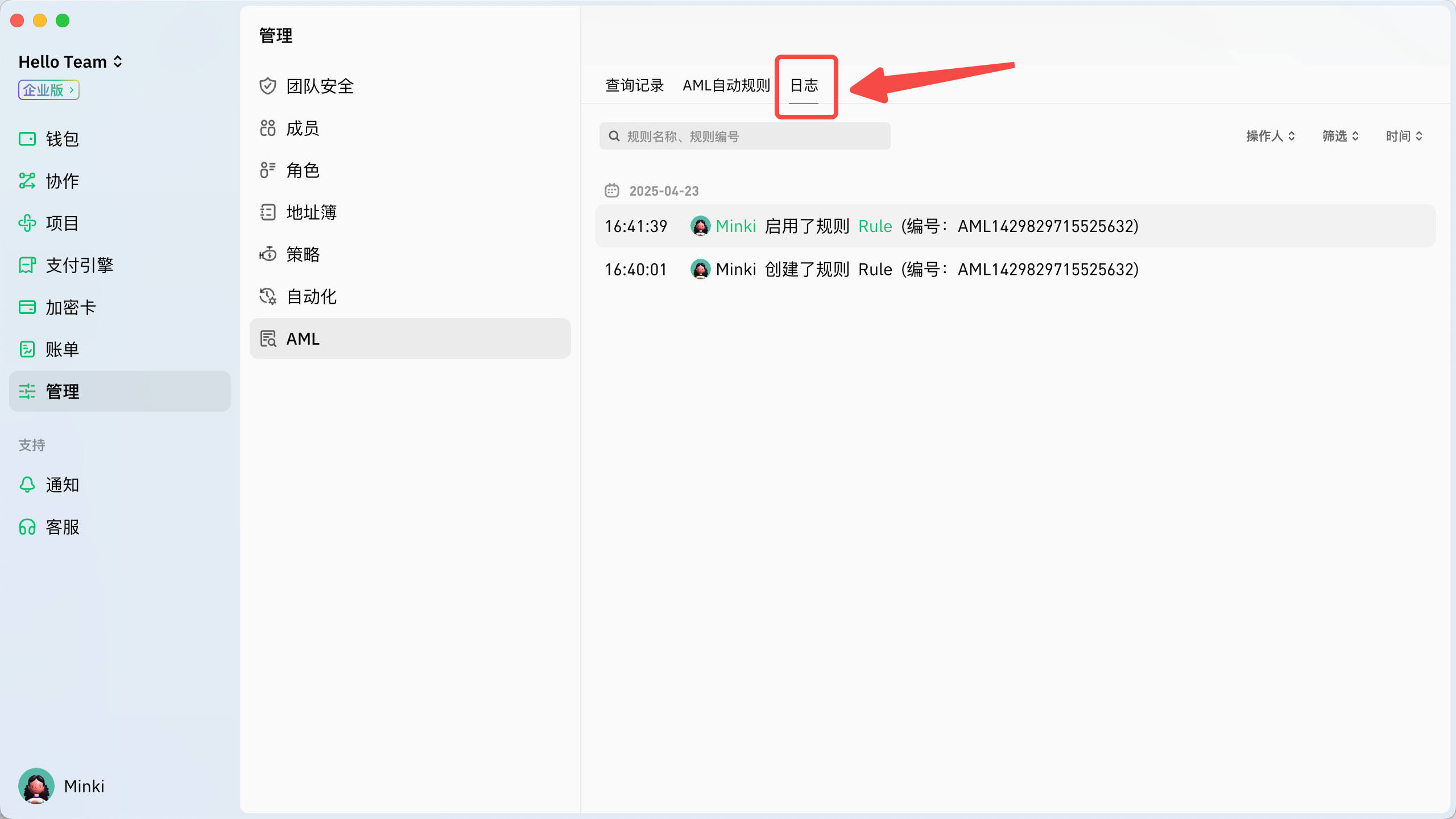 每次创建、编辑、启用及删除规则都会有记录，可在日志查看。