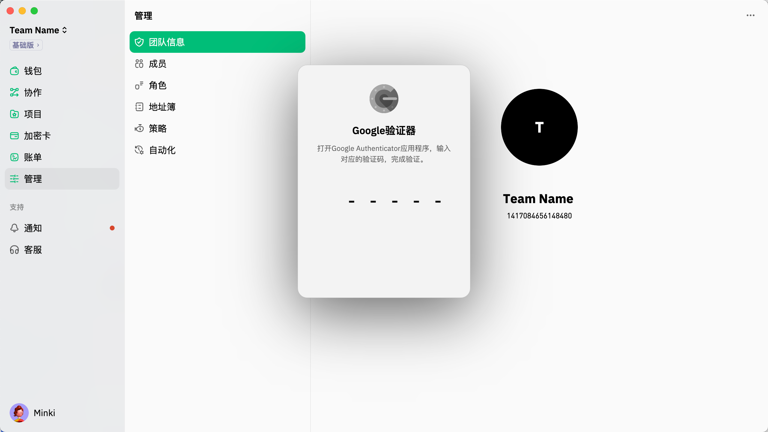 确认后，您需要完成Google验证。验证成功后，团队将被解散。