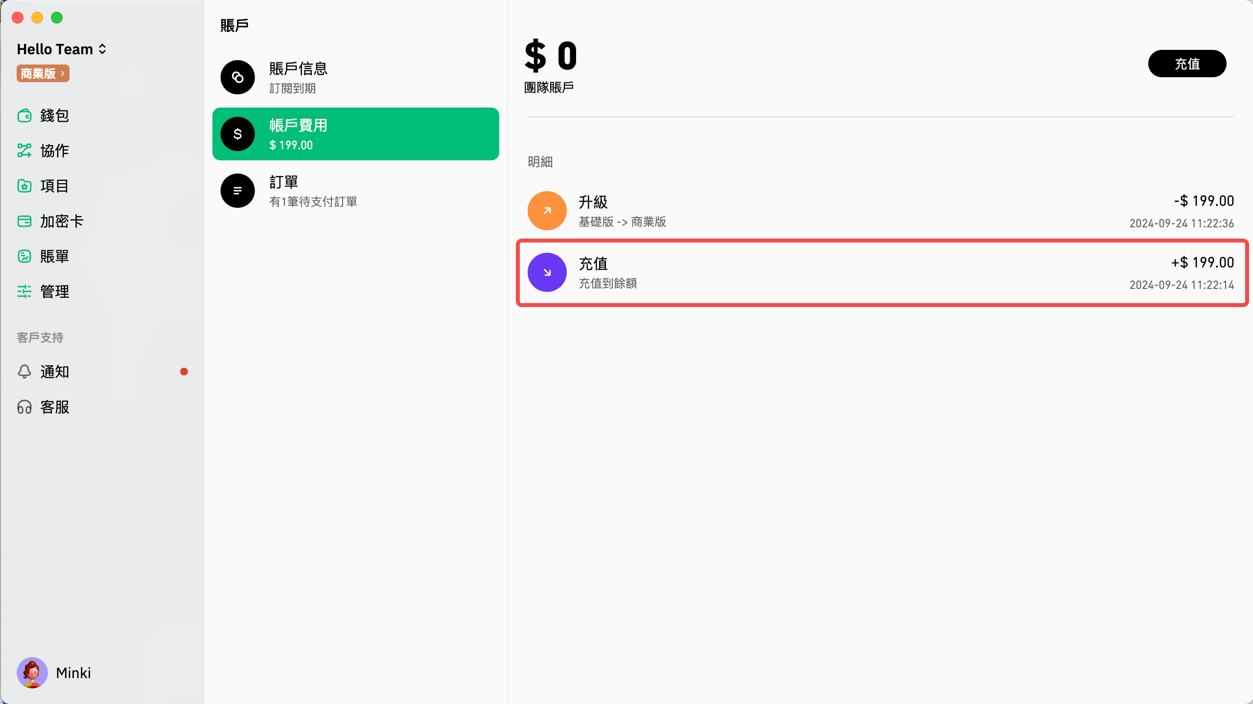 3. 如果充值成功，您可以在此查看您的餘額和詳細信息。