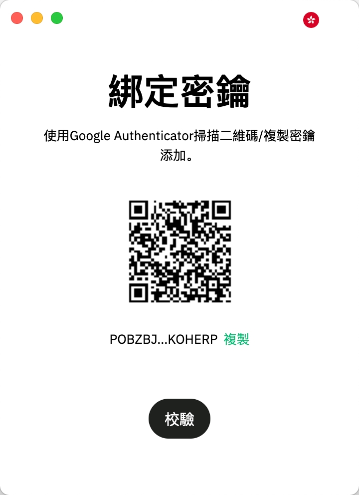 5. 請打開Google驗證器PC版 -> 點擊圖標<img src="https://3200384756-files.gitbook.io/~/files/v0/b/gitbook-x-prod.appspot.com/o/spaces%2FPoazW59IJbERNbp3S6uz%2Fuploads%2F5u07s1RBKUlpOyAWeMto%2Fimage.png?alt=media&#x26;token=f3ffcdc5-b4d1-4f0c-b6c6-8f35bc30b26e" alt="" data-size="line">以添加新密鑰 -> 選擇您想綁定密鑰的方法 -> 添加。然後返回Cregis，點擊「校驗」。<br>