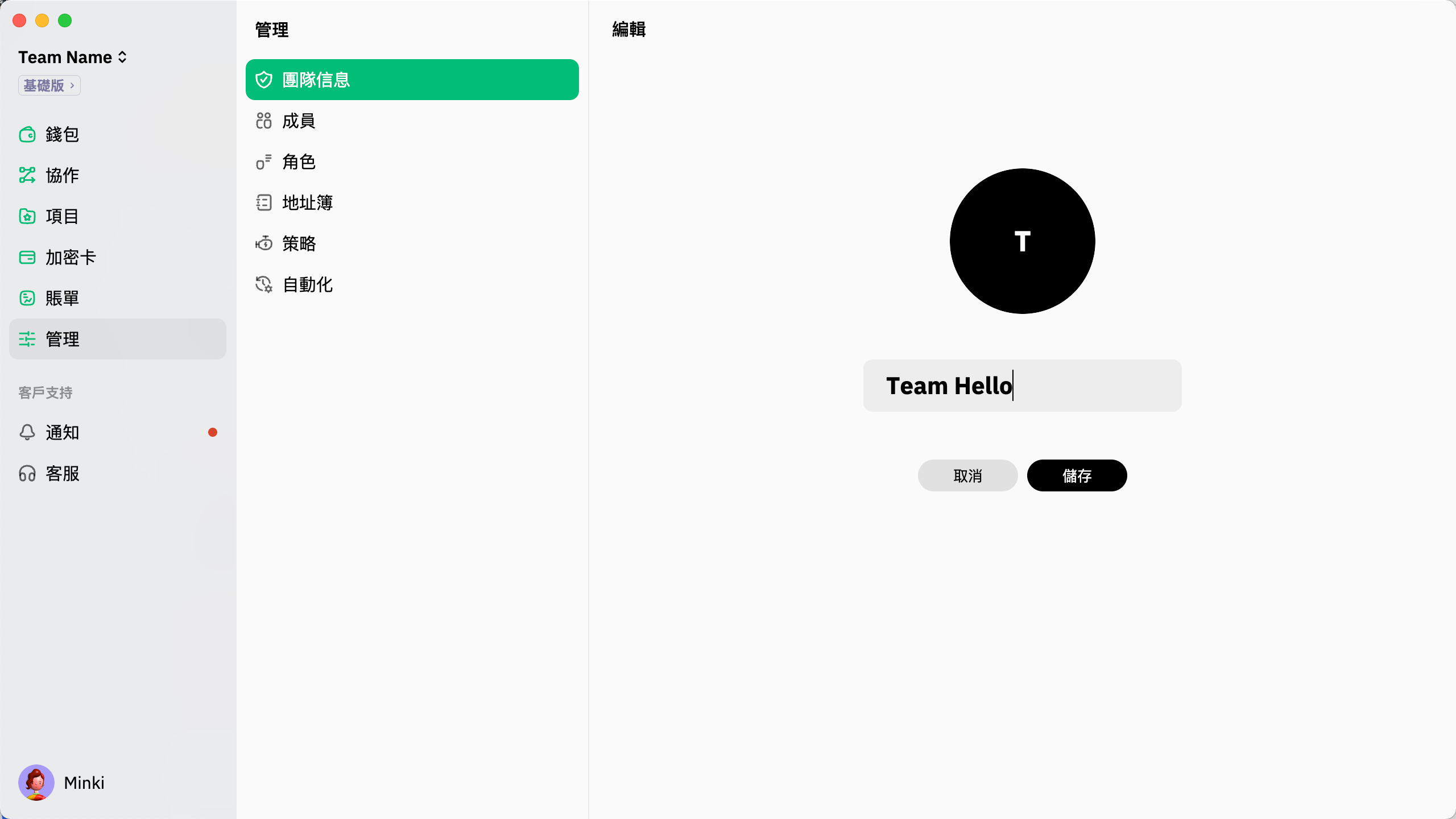 您可以輸入您想更改的團隊名稱，然後點擊“保存”以應用更改。