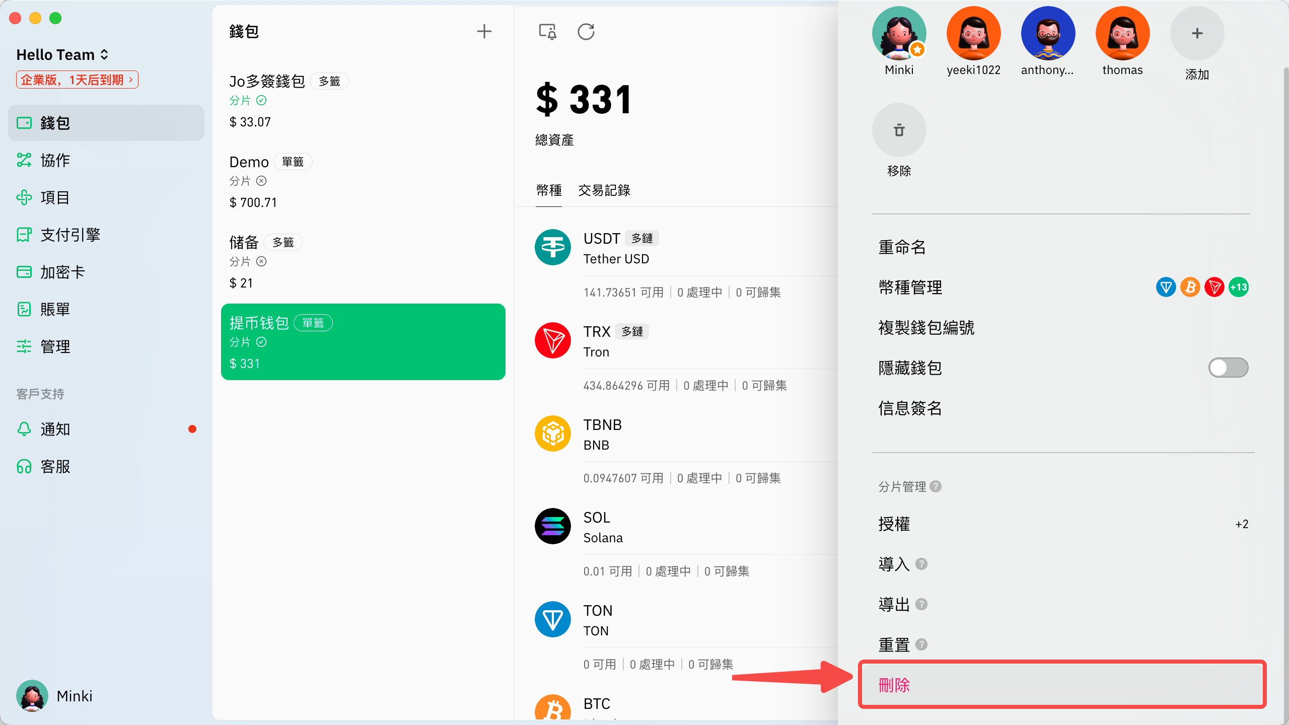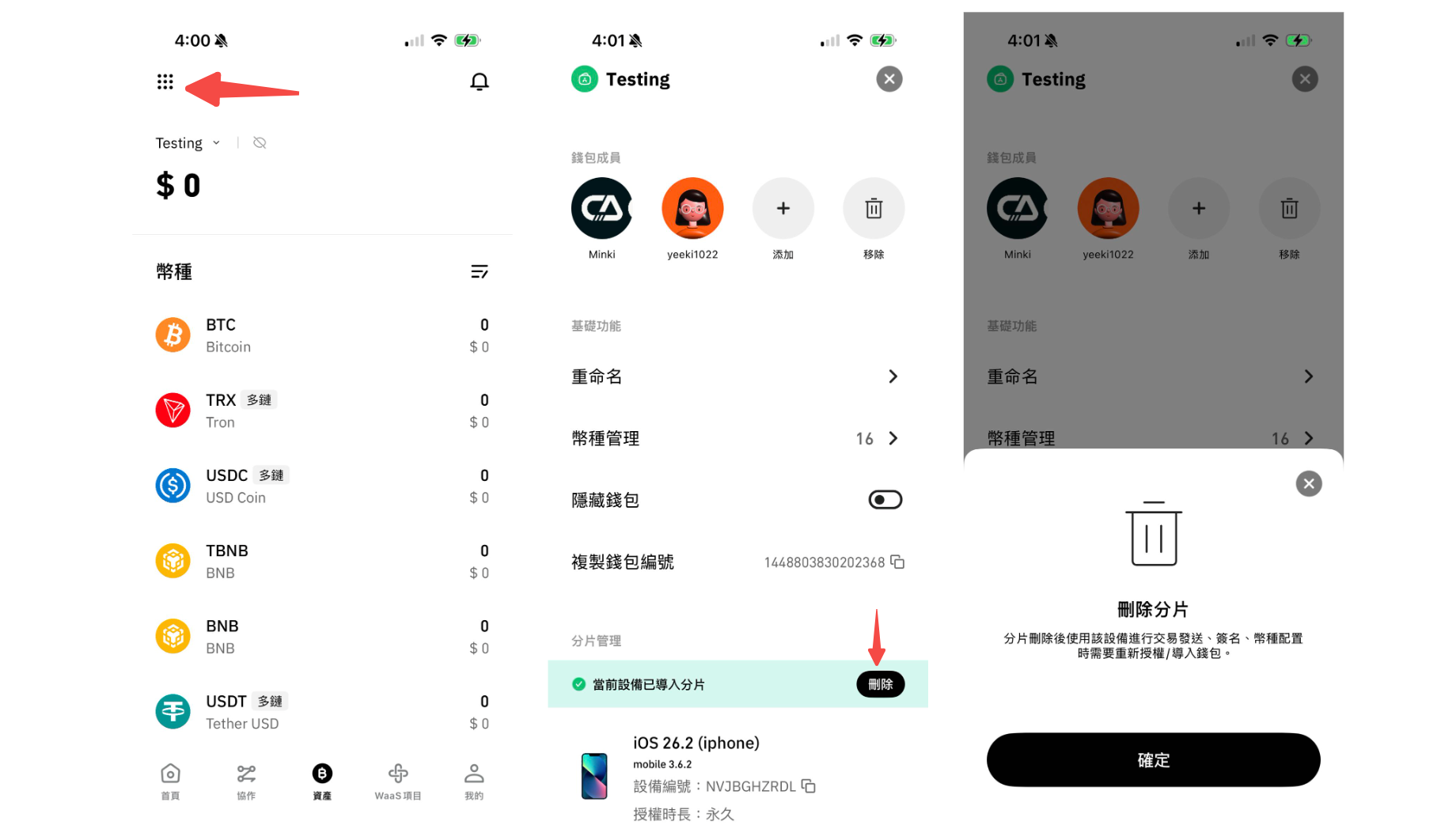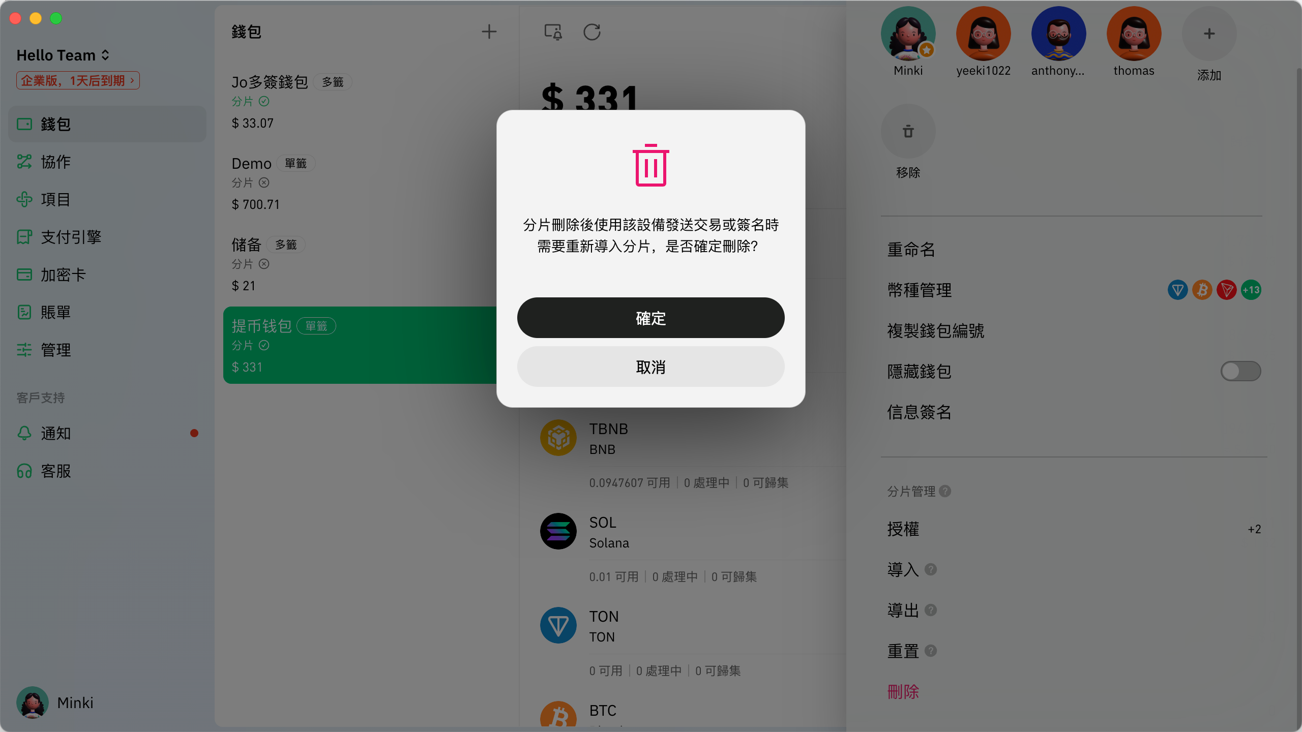 出於安全考慮，您可以刪除設備中的密鑰分片。如果您找不到分片，您可以通過任意設備重置它。\