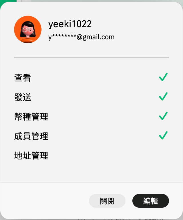 點擊錢包管理下的成員圖標，彈出窗口將顯示該成員的權限。然後，您可以點擊“編輯”開始修改權限。