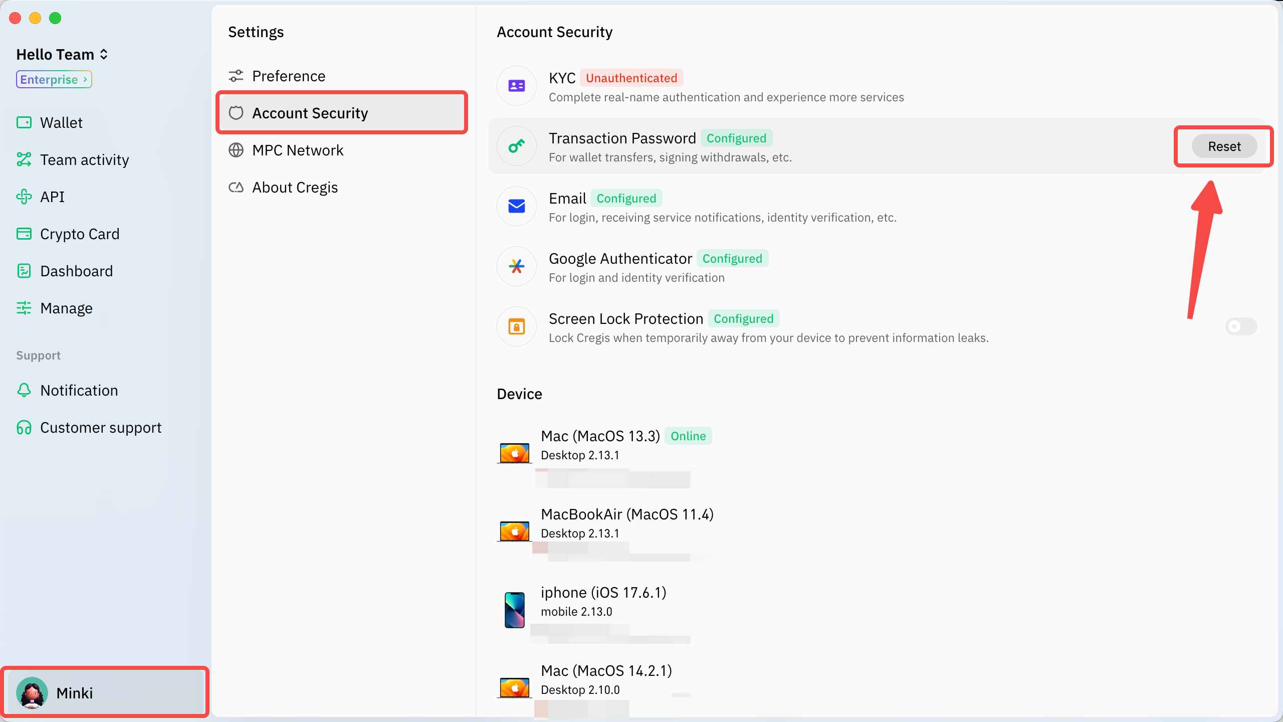 You can reset your transaction password in Cregis. Please refer to the steps below for the reset process.